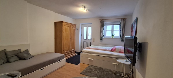 Unsere Apartments Sehr schönes Apartment ca. 25m², für 1 -3 Personen, einem Doppelbett 1,4m einem und Einzelbett, einer kleinen Küche sowie einer großen Sitzgelegenheit, TV und WLAN. Eigenes Bad. Sehr schönes Apartment ca. 35m² für 2 -4 Personen, mit zwei getrennten Schlafzimmer Zimmer integrierter Küche und Bad. Jedes Zimmer verfügt über eine Sitzgelegenheit sowie ein Doppelbett 1,4 m. Jedes Zimmer verfügt über ein TV-Gerät und WLAN. Sehr schönes Zimmer ca. 20m² für 1 -2 Personen, mit einem Doppelbett 1,4m, Sitzgelegenheit, TV, WLAN und eigenem Bad. Die Küche ist zur Mitbenutzung. Parkplätze & Internet Parkplätze sowie eine W-LAN Internetverbindung stellen wir unseren Gästen selbstverständlich kostenfrei zur Verfügung. Freizeitmöglichkeiten & Wissenswertes Die nahegelegene Informieren Sie sich gleich hier über das Angebot des Münchner Verkehrsverbund
